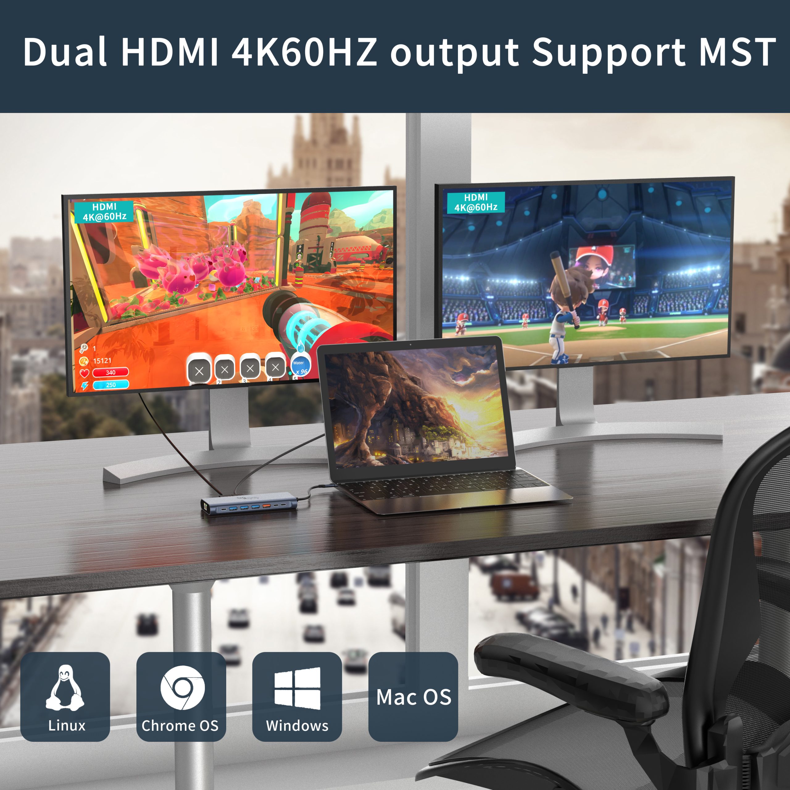 | 2*HDMI + 1*VGA + 2*USB-A 3.0 + 1*USB-A 2.0 + 1*USB-C PD + 1*USB-C 3.0 + 1*3.5MM Aux + 1*SD + 1*TF + 1*RJ45 |